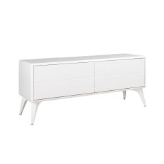 Металлические ножки служат надёжной опорой для изделия, а их белый глянцевый декор делает тумбу и ножки единым целым.
