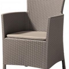 Iowa - это элегантное и комфортное садовое кресло, предлагаемое в комплекте с подушкой. Широкая гамма цветов и оригинальная, подобная ротанговой, фактура поверхности придется по вкусу даже самым требовательным пользователям. Изготовлено из стойкой к воздействию УФ-излучения и погодных условий высококачественной пластмассы. Очень просто собирается и легко чистится.